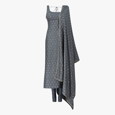 Amelia made-to-measure kameez set has been designed for timeless elegance and modern versatility with a touch of tradition. The set features a sequin and zari embroidered silk kameez and dupatta finished with a gold trim and lycra pajami.