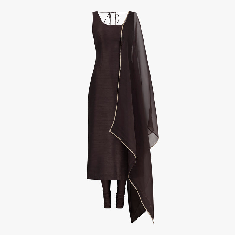 Carina made-to-measure kameez set has been designed for timeless elegance and modern versatility. The set features a plain semi raw silk kameeez and lycra pajami, and a plain pure organza dupatta finished with a gold trim, giving you a blank canvas to wear a statement necklace set to elevate the look.